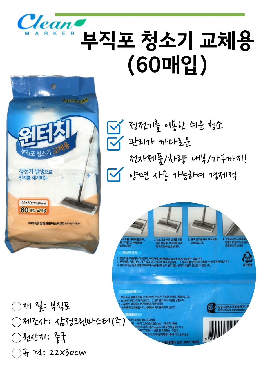 원터치 부직포 청소기 교체용 60매입
