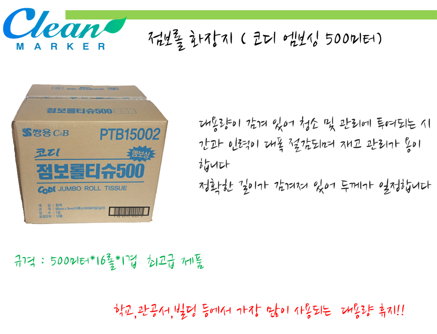 점보롤 화장지-PTB15002(엠보싱 500미터16롤)